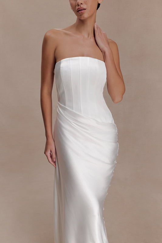 Grace Strapless Draped Waist Maxi Dress - Ivory