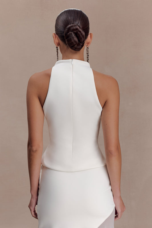 Indira Gathered Slinky Halter Maxi Dress - Ivory