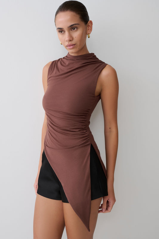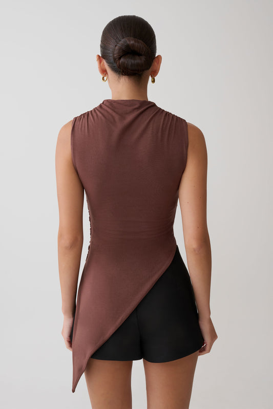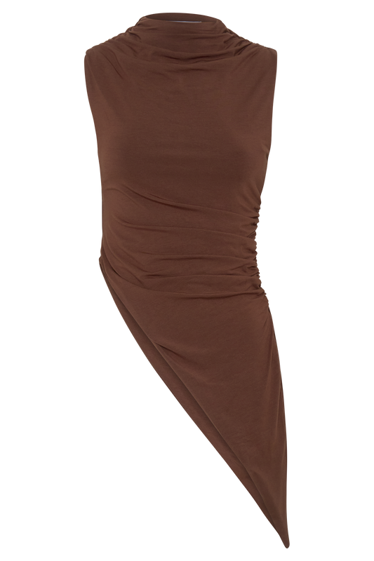 Ryn Twisted One Shoulder Maxi Dress - Dark Chocolate
