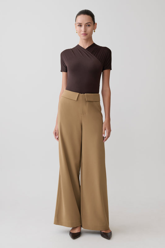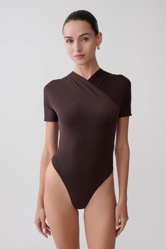 Junie Shortsleeve Cross-Over Bodysuit - Chocolate