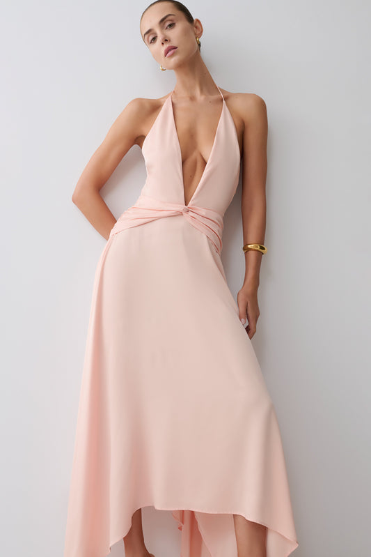 Regular price $189Unit price / perBack In StockStacie Pleated Halter Maxi Dress - Cacao