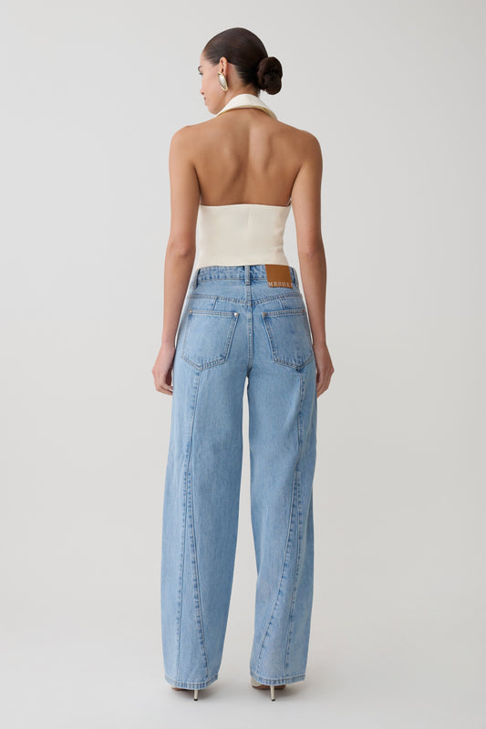 Regular price $185Unit price / perMiller Denim Halter Midi Dress - Classic Blue