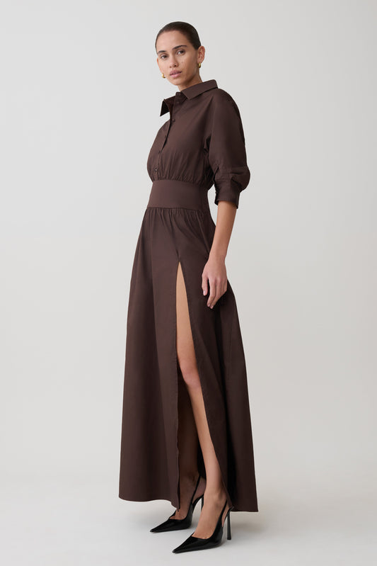 Gia Long Sleeve Satin Shirt - Chocolate
