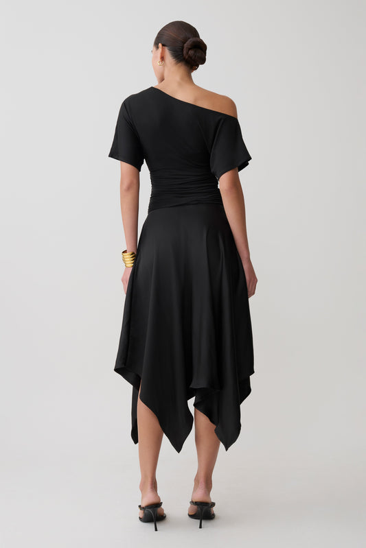 Caspian Slinky And Mesh Off Shoulder Maxi Dress - Black