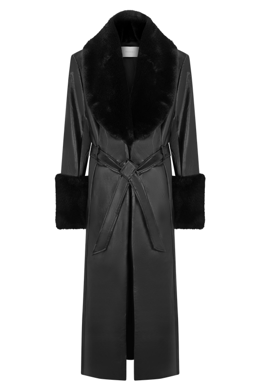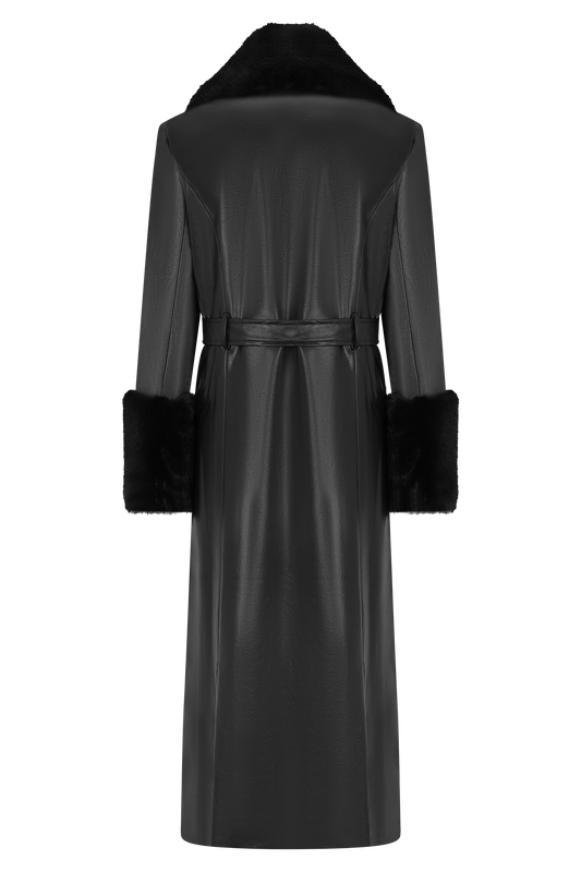 Bec Faux Leather Trench Coat With Faux Fur - Black