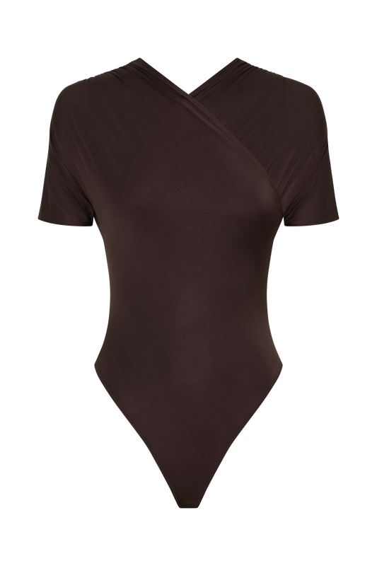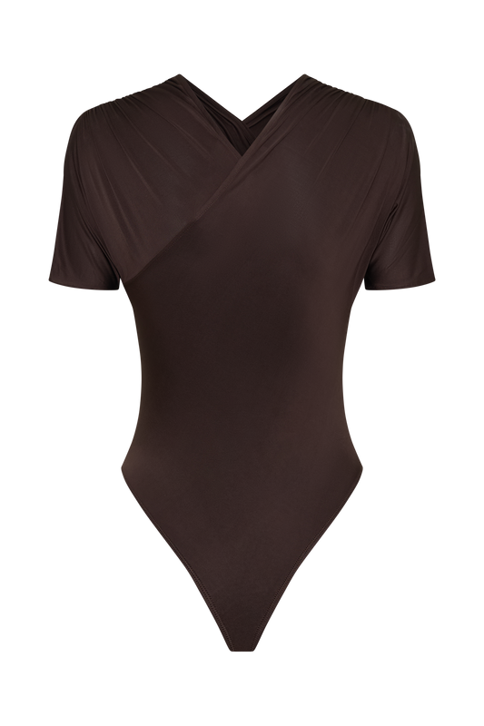 Shortsleeve Cross-Over Bodysuit - Chocolate