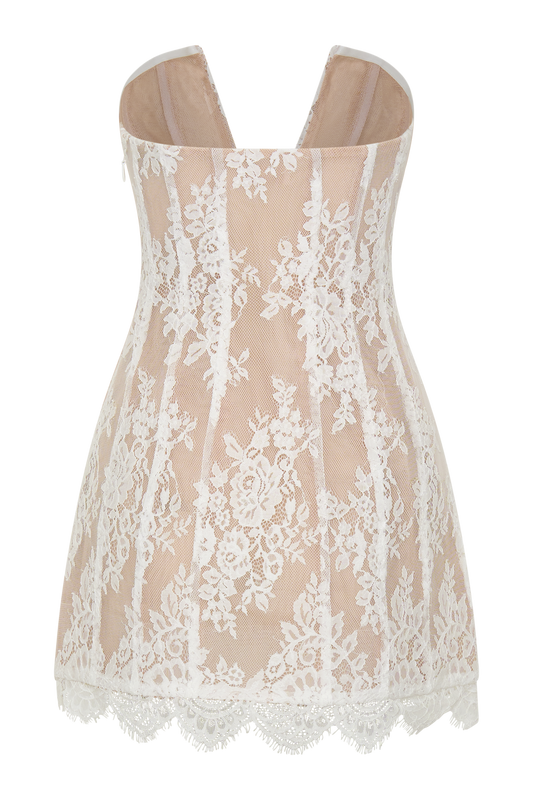Aurelie Long Sleeve Lace Mini Dress - Ivory