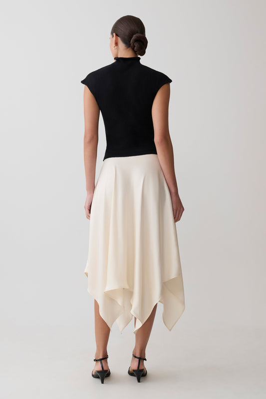 Coralie Asymmetric Satin Midi Skirt - Ivory