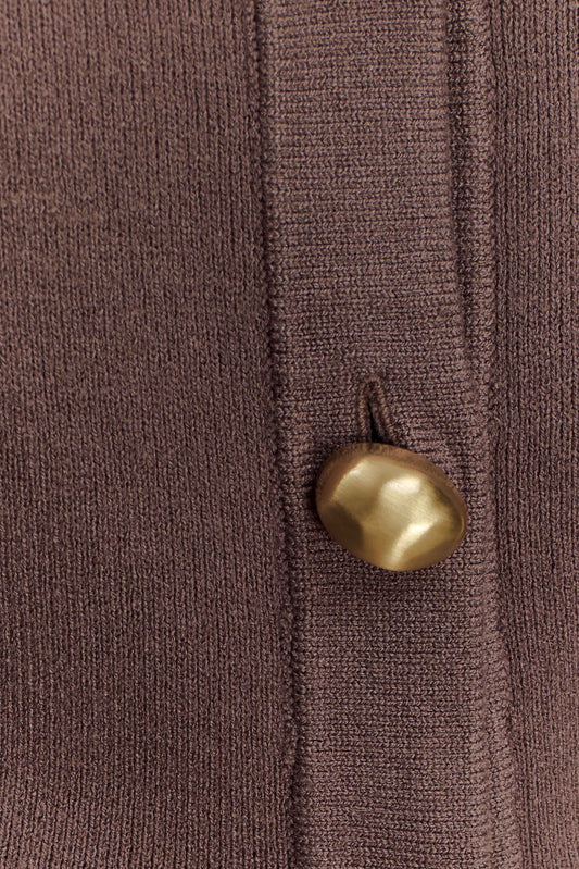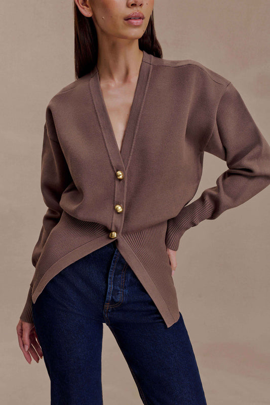 Amanda Statement Button Knit Cardigan - Cacao Brown