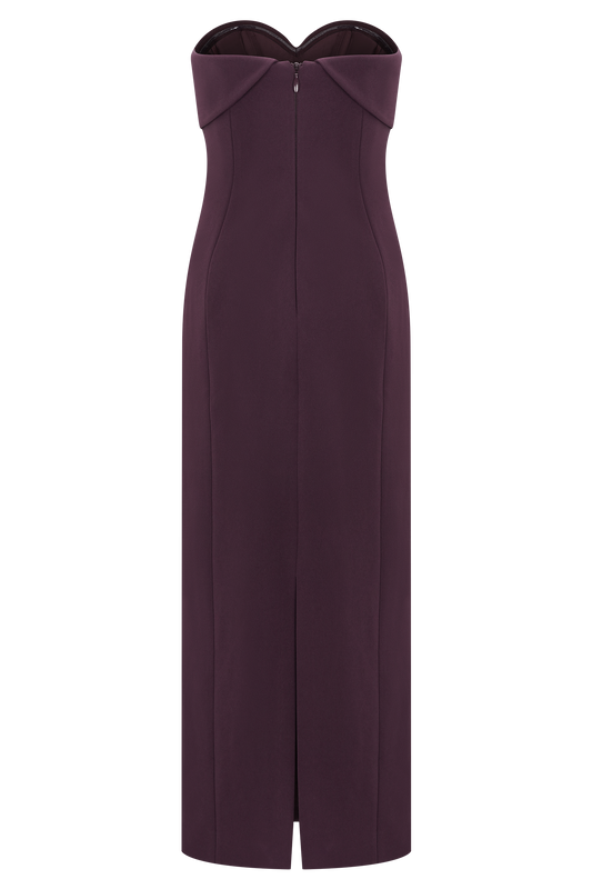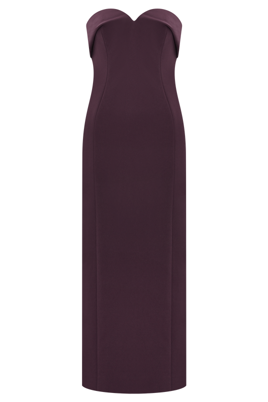 Cary Folded Strapless Crepe Midi Dress - Wine