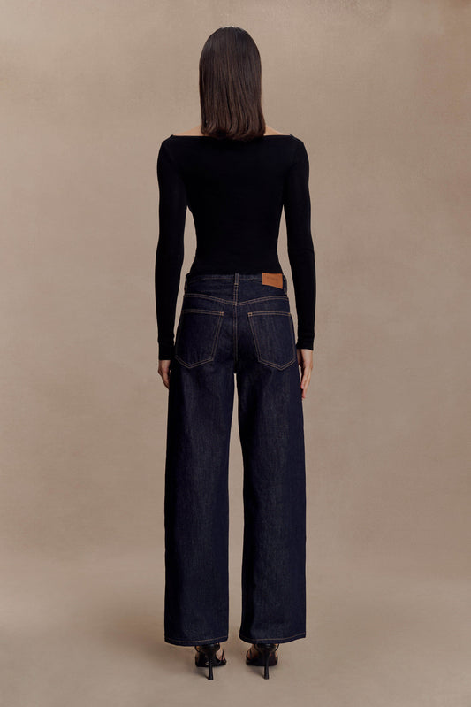 Paedyn Merino Wool Ribbed Long Sleeve Top - Black