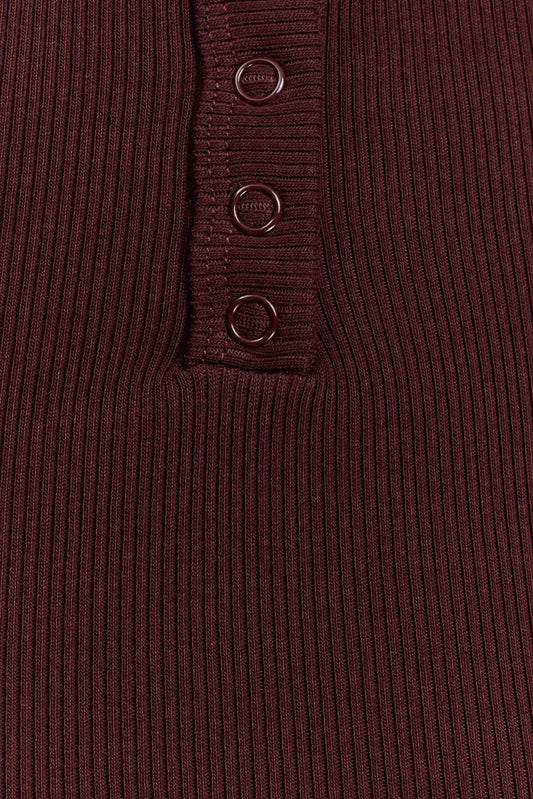 Ribbed Sleeveless Top With Hardware - Burgundy