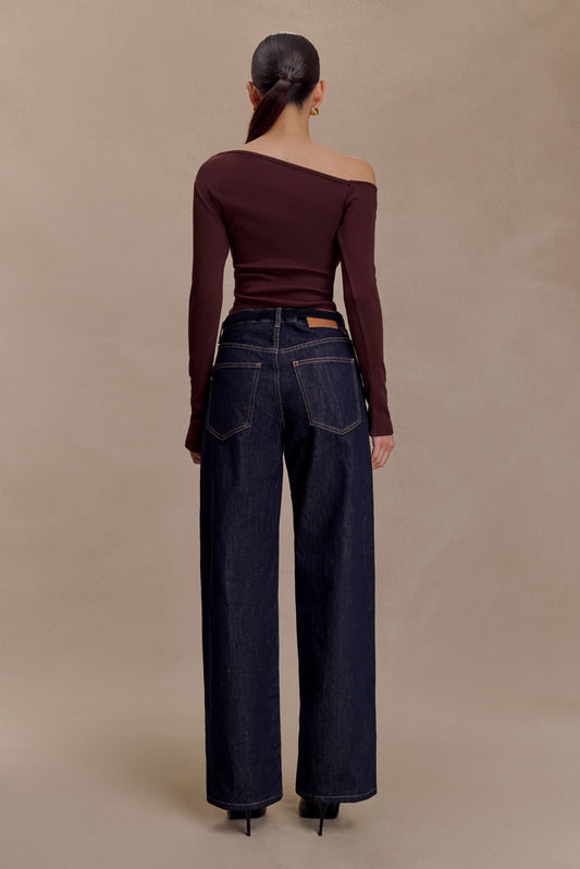 Maelle Off Shoulder Long Sleeve Top - Deep Chocolate