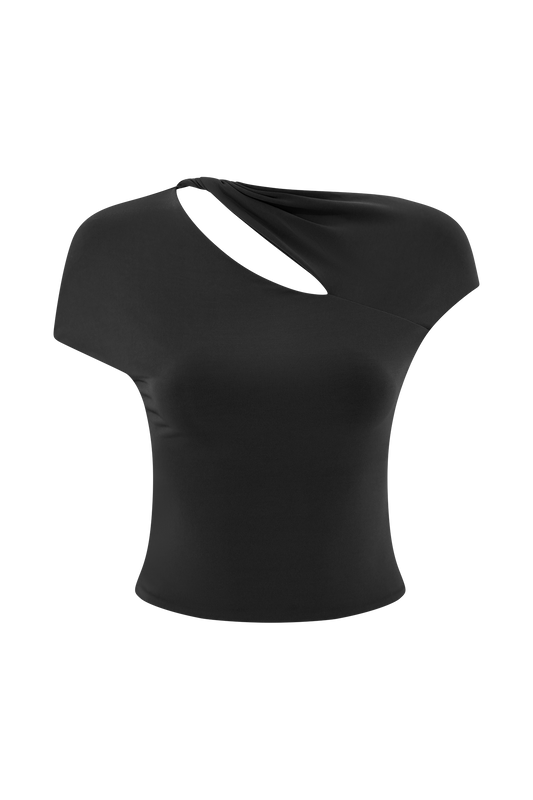 Catelyn Asymmetrical Scuba Jersey Top - Black
