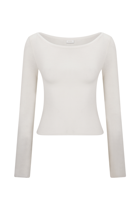 Merino Wool Ribbed Long Sleeve Top - Ivory