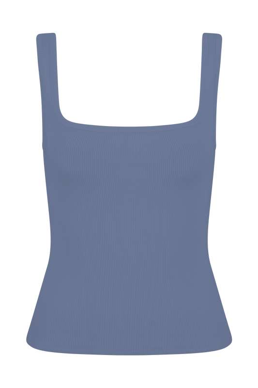 Ribbed Square Neck Sleeveless Top - Cornflower Blue