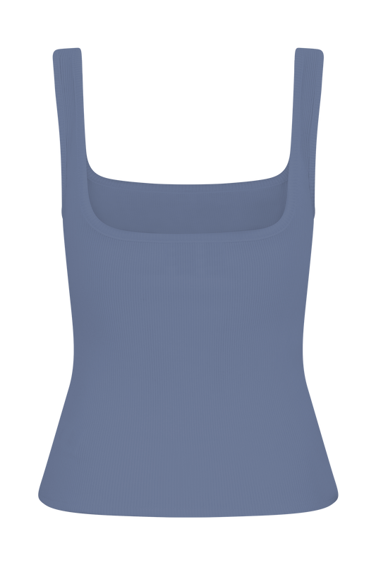 Aisling Ribbed Square Neck Sleeveless Top - Cornflower Blue