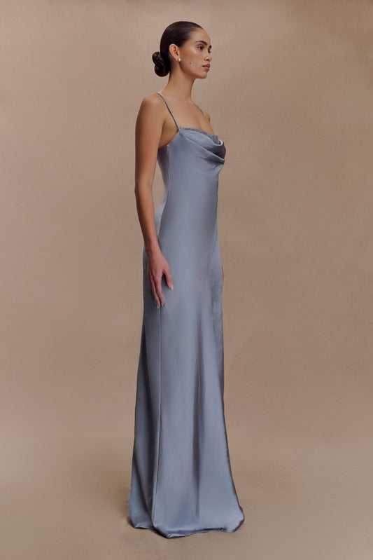 Violet Sleeveless Satin Maxi Dress - Frosted Blue
