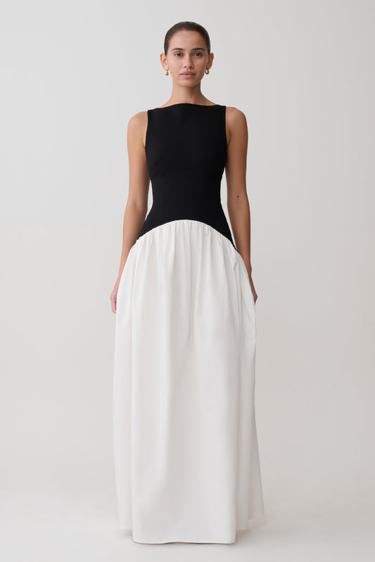 Acacia Contrast Sleeveless Maxi Dress - Black/White