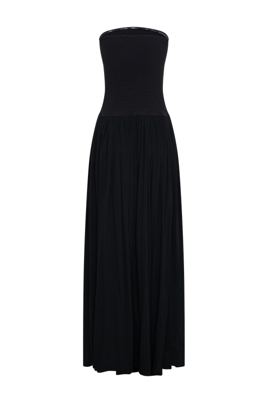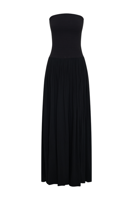 Maureen Cotton Shirring Maxi Dress - Black