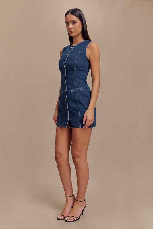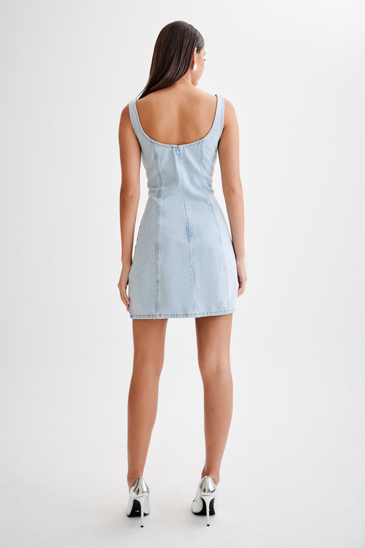 Merlyn Denim Cotton Mini Dress - Indigo Blue