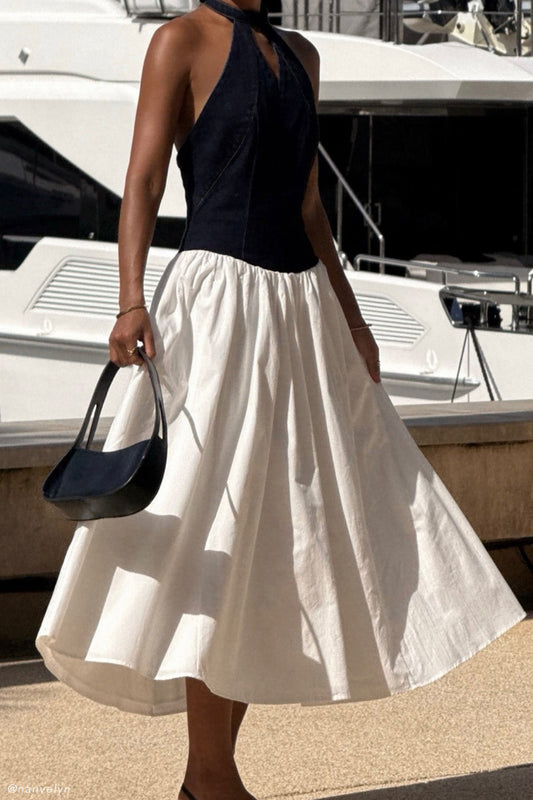 Caroline Denim Halter Midi Dress - Indigo Blue