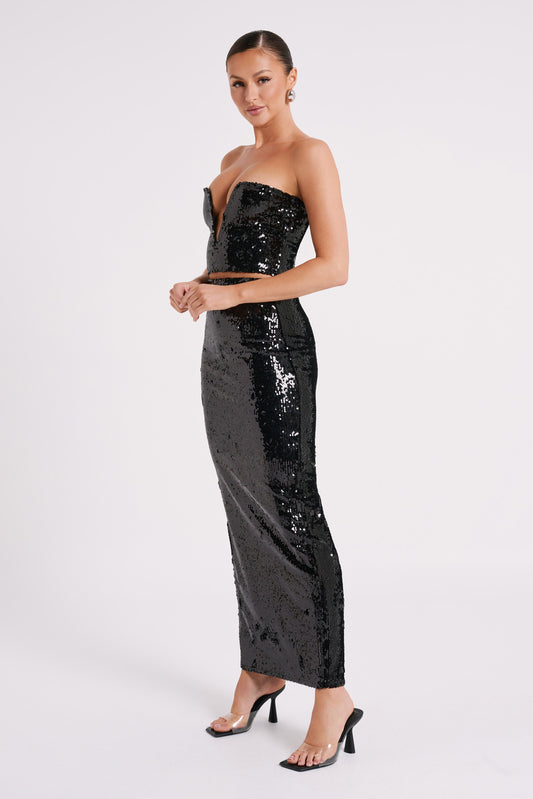 Cosette Sequin Maxi Skirt - Black