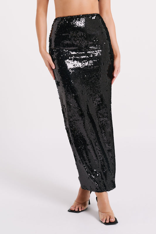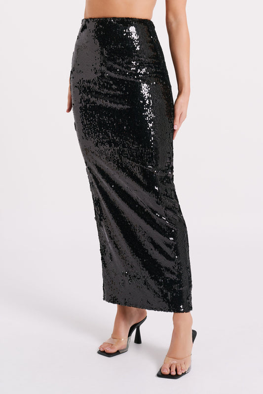 Sequin Maxi Skirt - Black