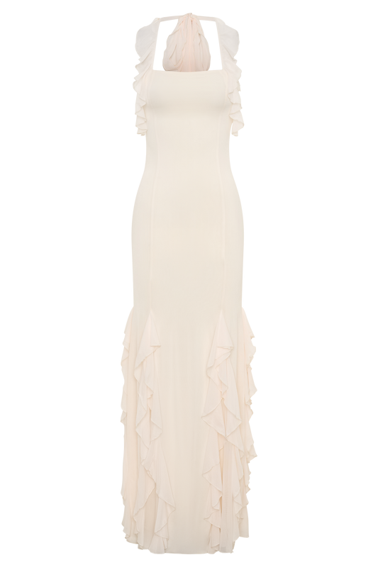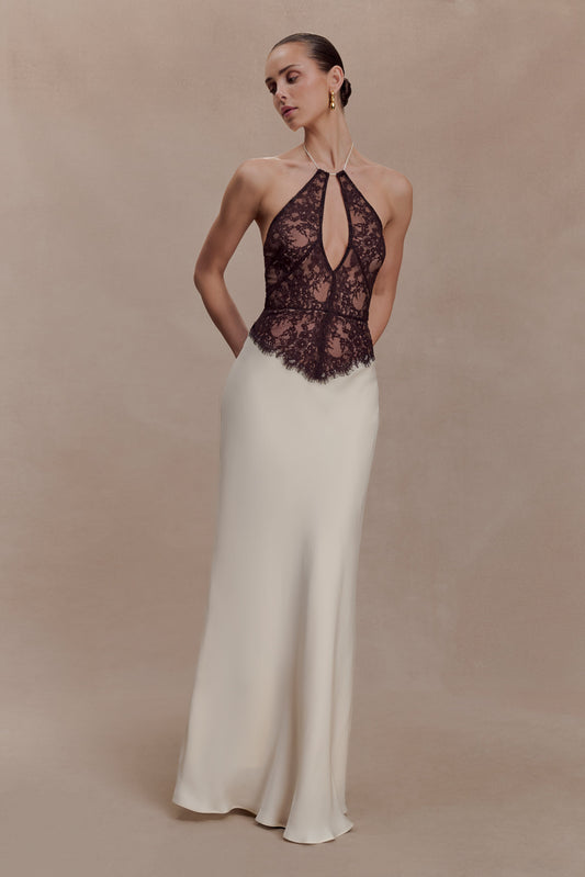 Sascha Lace And Satin Halter Maxi Dress - Ivory/Chocolate