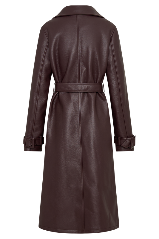 Tarah Faux Leather Trench Coat - Cacao Brown