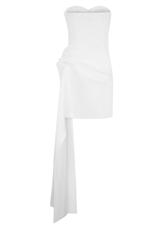 Strapless Gathered Mini Dress - White