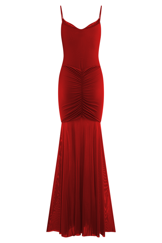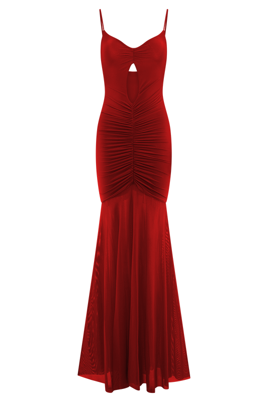 Nerea Slip Halter Maxi Dress - Cherry Red