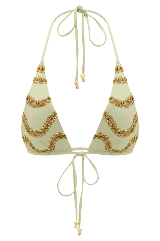 Beaded Triangle Bikini Top - Sage