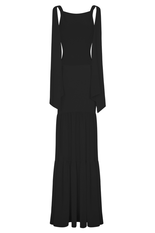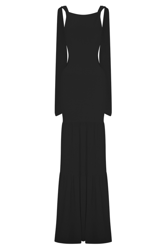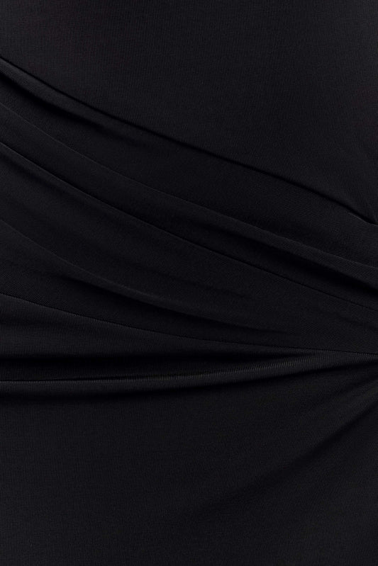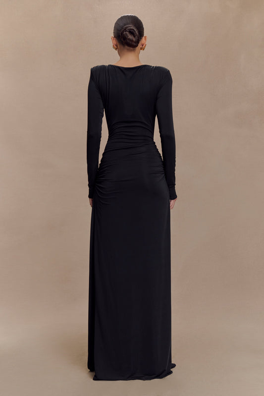 Caspian Slinky And Mesh Off Shoulder Maxi Dress - Black
