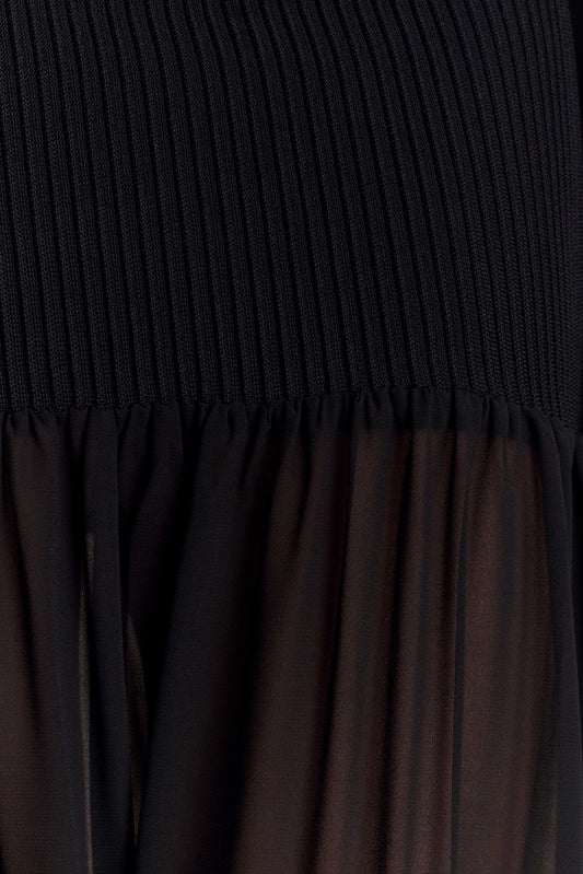 Slinky And Mesh Off Shoulder Maxi Dress - Black