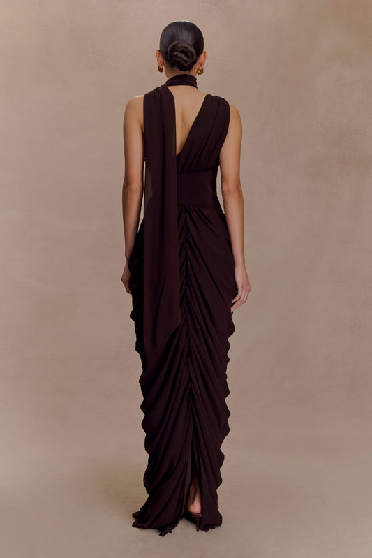 Marcel Off Shoulder Diamante Maxi Dress - Chocolate