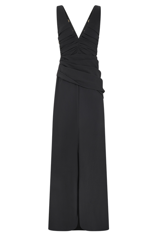 Slinky Sleeveless Mini Dress With Hardware - Black