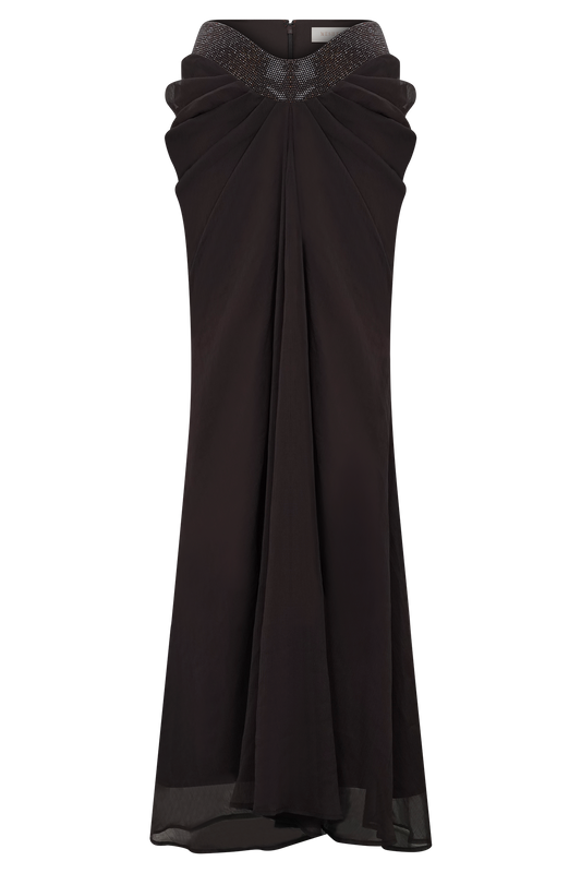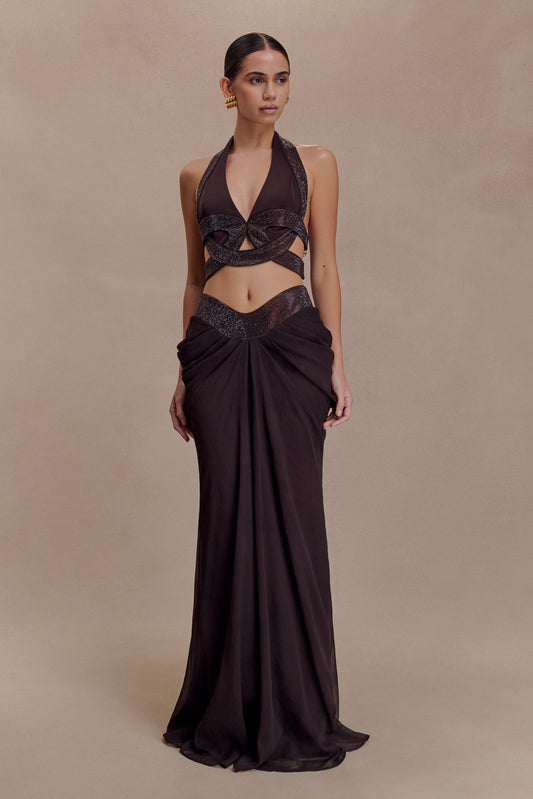 Regular price $185Unit price / perSiren Satin And Diamante Maxi Skirt - Dark Chocolate
