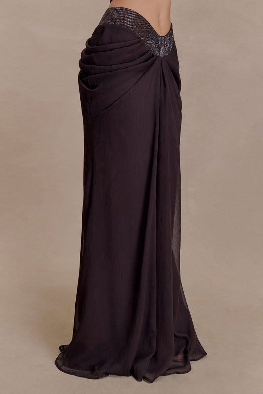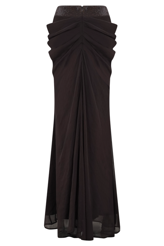 Siren Satin And Diamante Maxi Skirt - Dark Chocolate