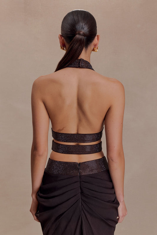 Regular price $159Unit price / perSiren Satin And Diamante Halter Top - Dark Chocolate