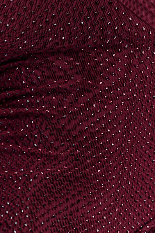 Long Sleeve Satin And Mesh Maxi Dress - Wine