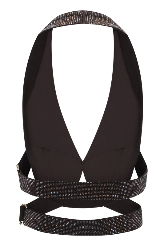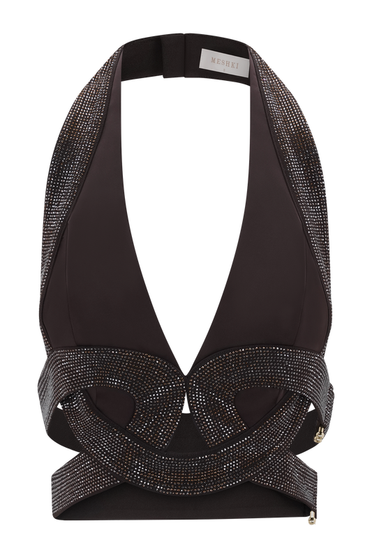 Siren Satin And Diamante Halter Top - Dark Chocolate