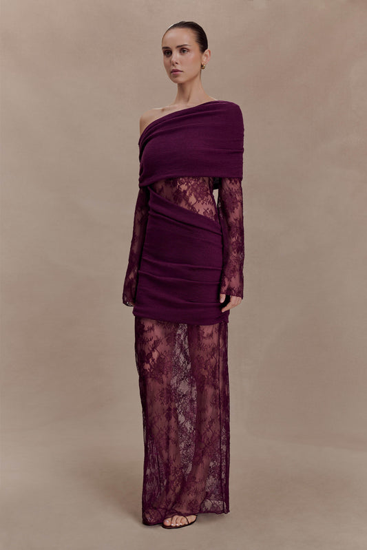Luxie Lace Knit Maxi Dress - Plum
