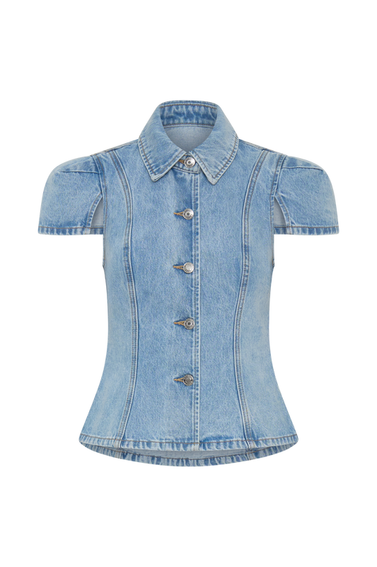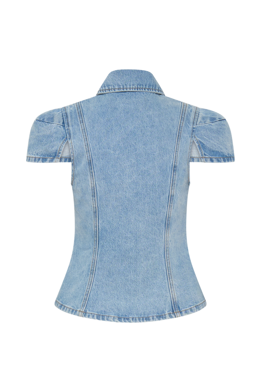 Bently Short Sleeve Denim Top - Washed Light Blue