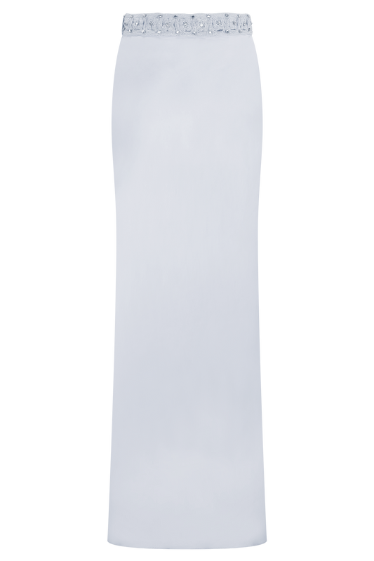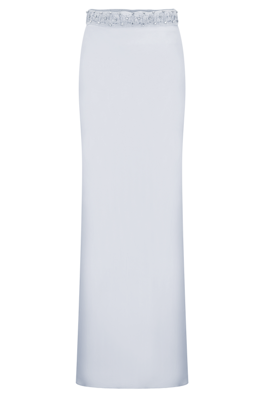 Chiffon Hand Beaded Maxi Skirt - Pale Blue