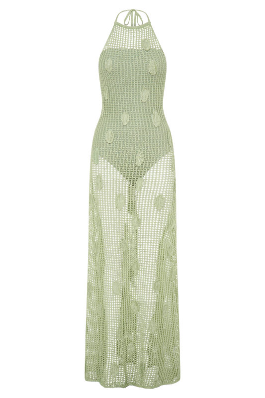 Elfie Crochet Halter Maxi Dress - Pastel Green