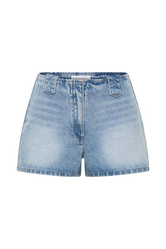 Erin Mid Rise Denim Shorts - Washed Light Blue