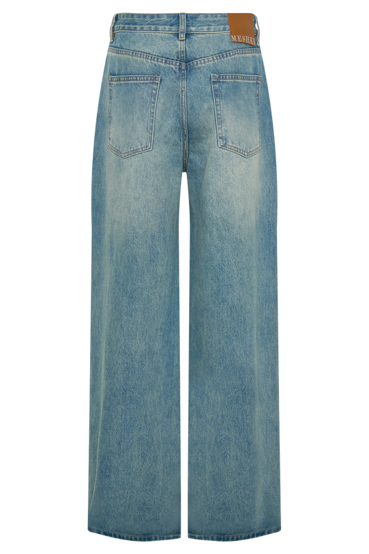 Mid Rise Wide Leg Jeans - Faded Mid Blue