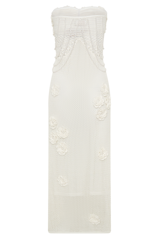 Samantha Crochet Midi Dress With Flowers - Ivory
