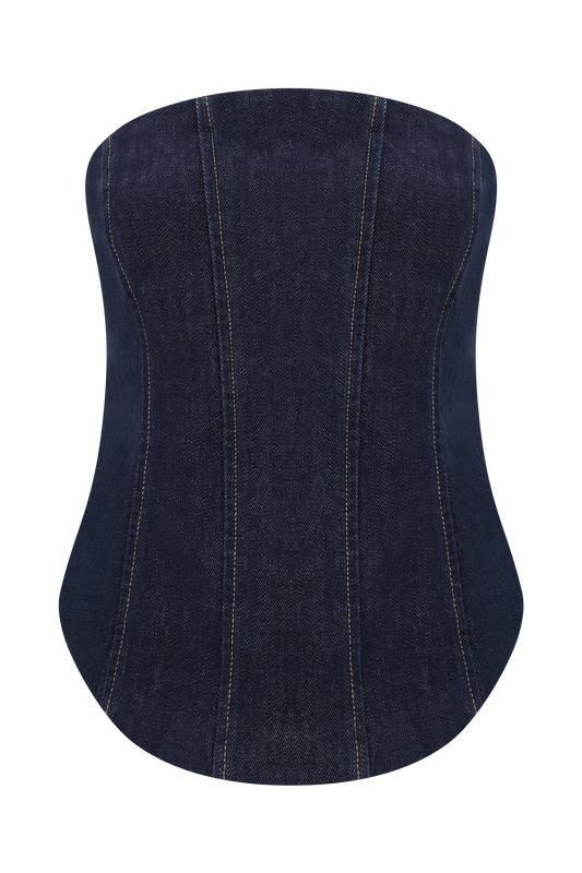 Meadow Denim Corset Halter Top - Dark Blue